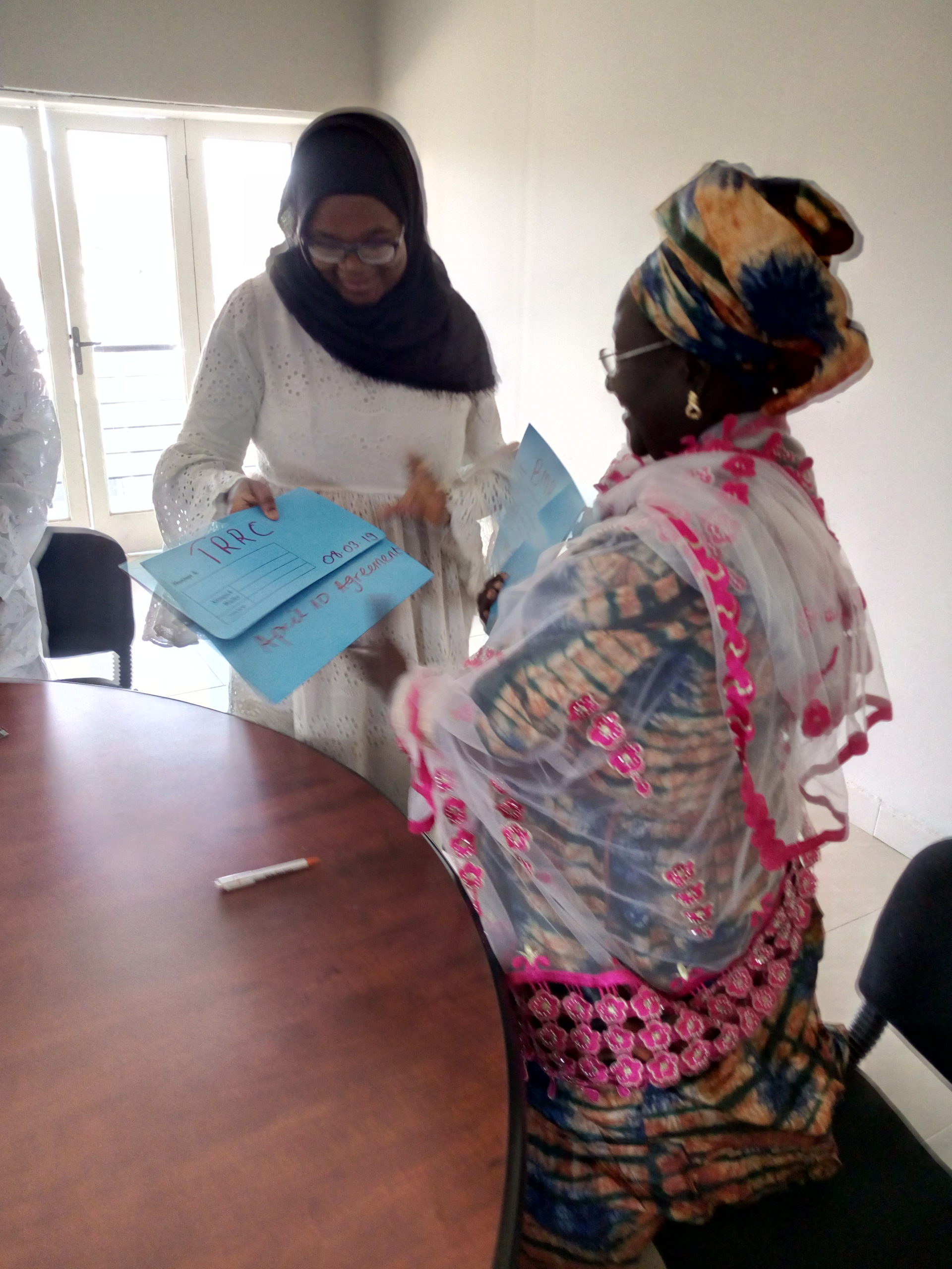 Musu Ba Koto Sawo and Mariama Joof signed the agreement n behalf of TRRC and BMR respectively. Mr. Essa Jallow, Communication Specialist chaired the ceremony.