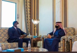 The Honourable Minister held diplomatic engagement with H.E Sheikh Mohammed bin Abdulrahman Al-Thani, the Deputy Prime Minister and Minister of Foreign Affairs of the State Qatar. The two leaders discussed bilateral cooperation in health, road construction, capacity building for security forces amongst others. Views were also exchanged on regional and international issues.