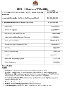 However MOFEA now claims that, in fact the Ministry of Health spent D41.6M out of the D160M provided to them. The use of those funds is what is in this press release. Just that this financial report raises more questions than provides satisfactory answers. We hope the NAMs will give it the necessary scrutiny to unravel the various line items so as to get the true picture and prevent duplication and misleading facts.