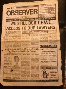 According to the Daily Observer’s hearing report, dated 12 December 1995, Jallow, who was only told about the charges against him the day before, did complain to the court that he didn’t have access to their lawyer. Prosecutor Bensouda responded by referring the blame to the “relevant authorities”. In a written response to Justice Info on July 9, Fatou Bensouda “categorically denies” the fact “that she expressed no concern about the lack of access to lawyers”.
