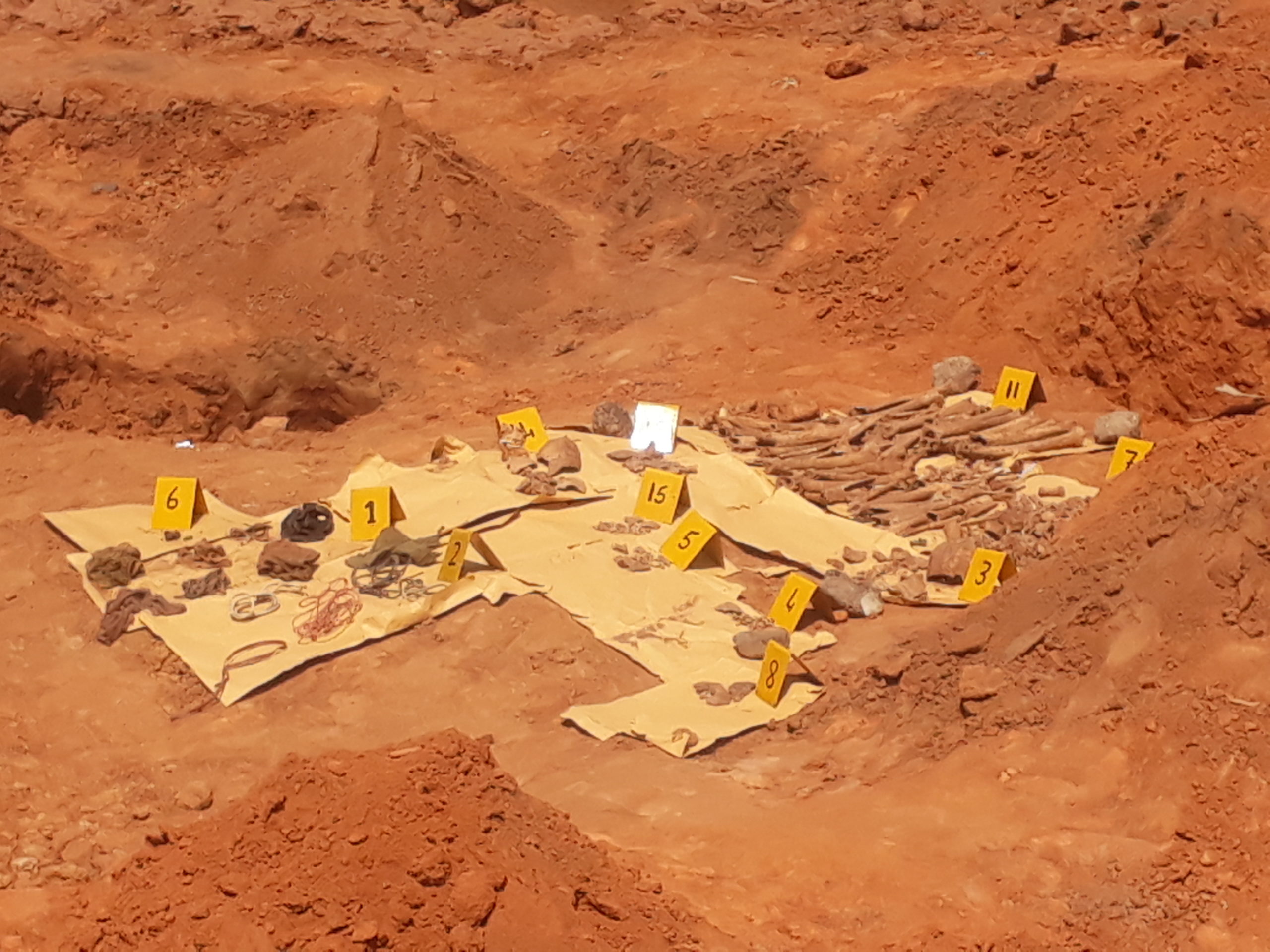 The investigators have found what looks like seven electric wires reportedly used to tie the hands of the executed soldiers and also seven worn-out underwear in the grave.